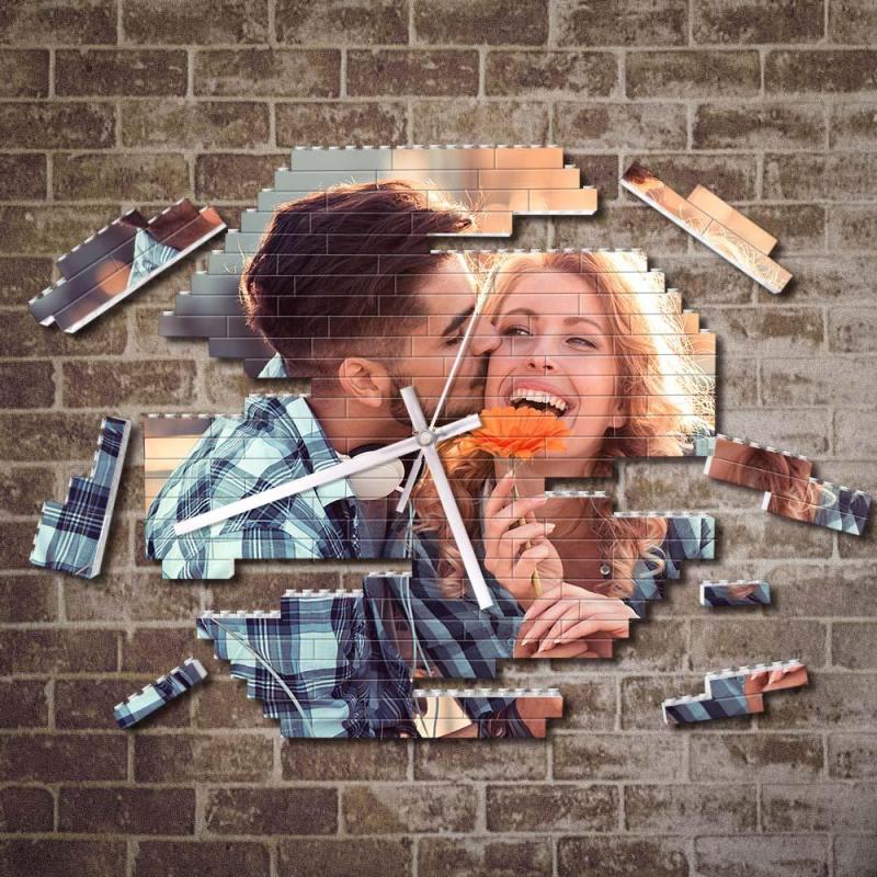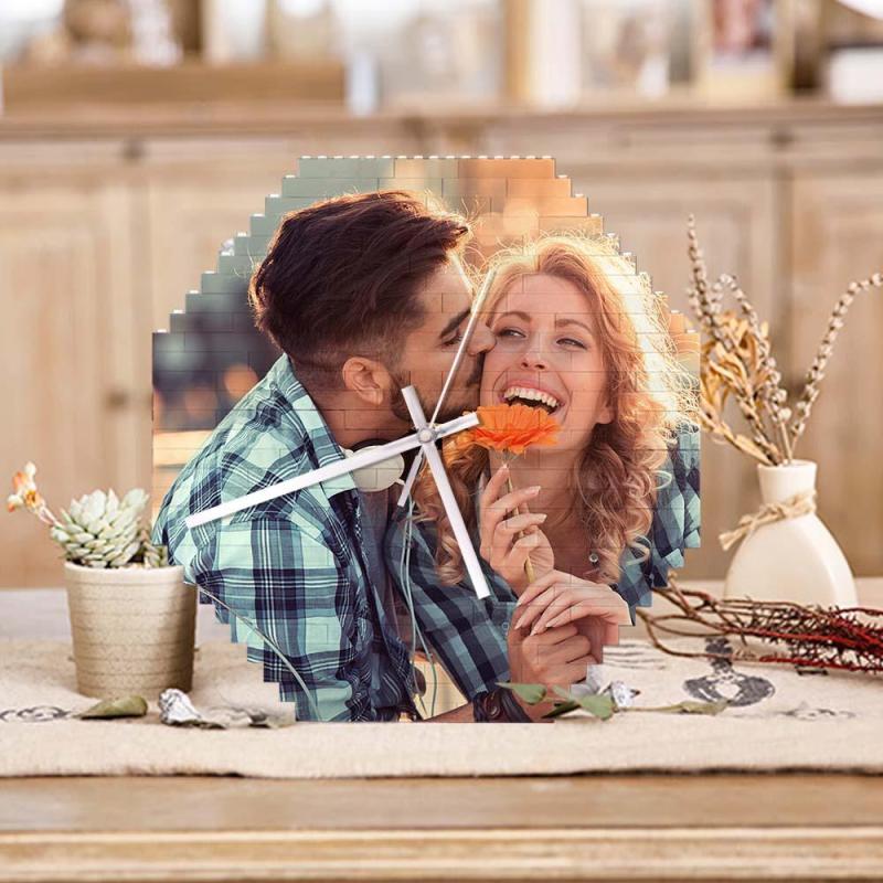客製化照片積木掛鐘個性拼圖時鍾情侶禮物