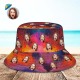 客製化臉水桶帽男女通用個性化寬邊戶外夏季帽子棕紅色抽象紋理