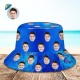 客製化臉水桶帽男女通用個性化寬邊戶外夏季帽子深藍色抽象紋理
