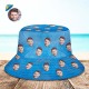 客製化臉水桶帽男女通用個性化寬簷戶外夏季帽子藍色油畫風格