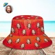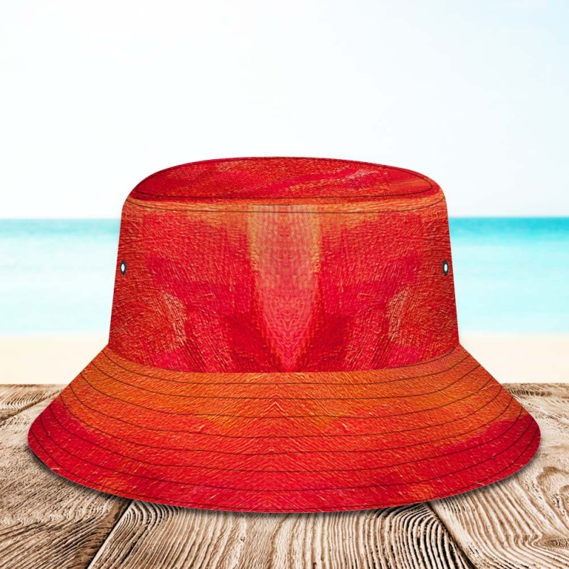 客製化臉水桶帽男女通用個性化寬邊戶外夏季帽子紅色油畫風格