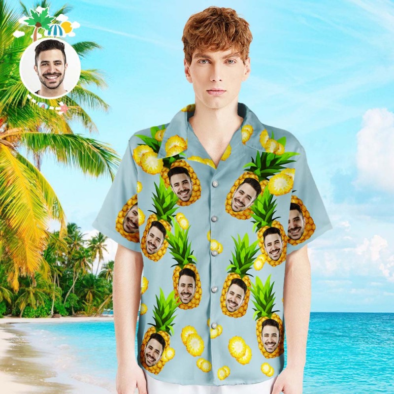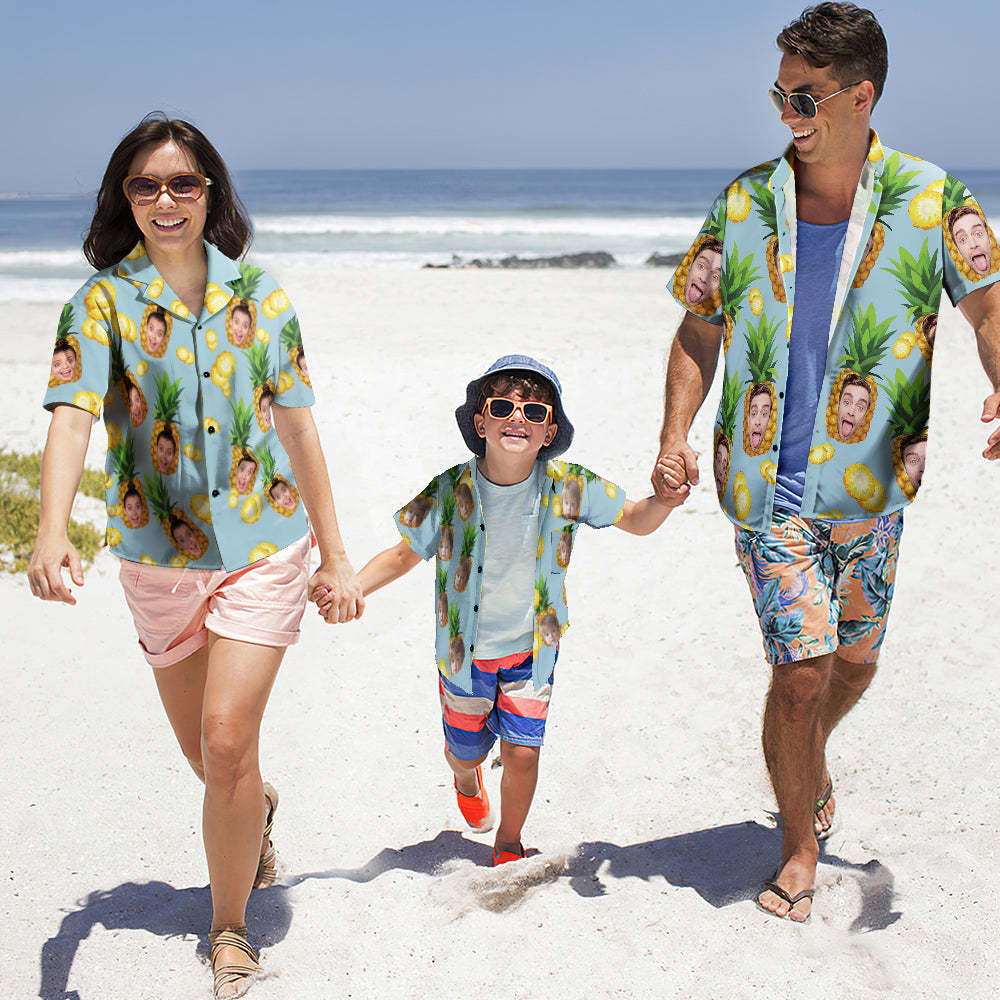 客製化照片夏威夷襯衫親子裝個性化臉夏威夷襯衫禮物大菠蘿
