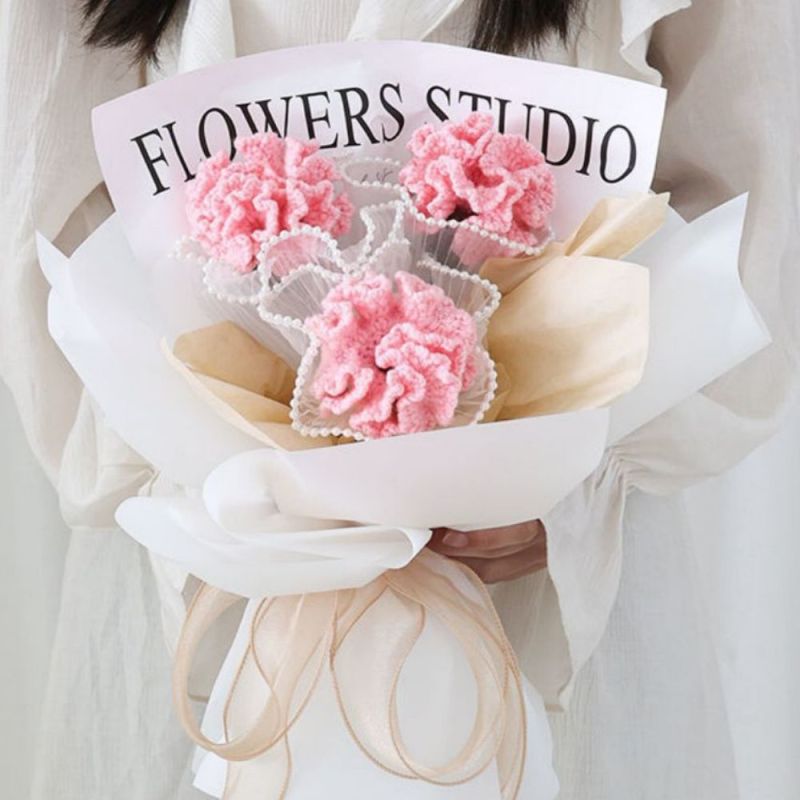 鉤針花束手工針織康乃馨花束送給她的節日禮物