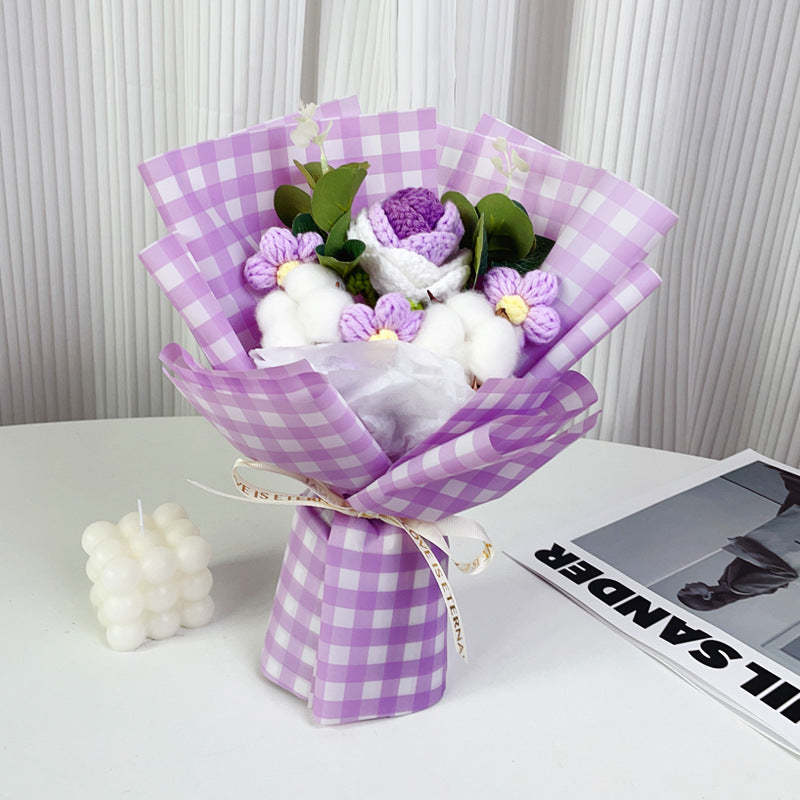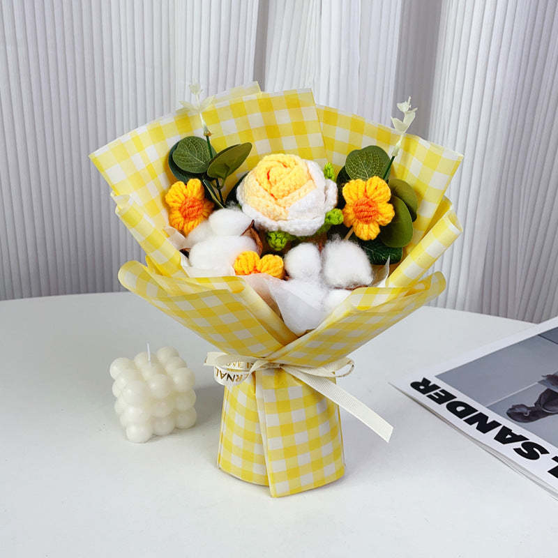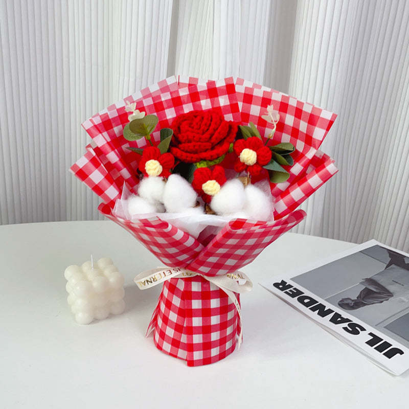 鉤針花束手工針織玫瑰棉和雛菊花束送給她的節日禮物
