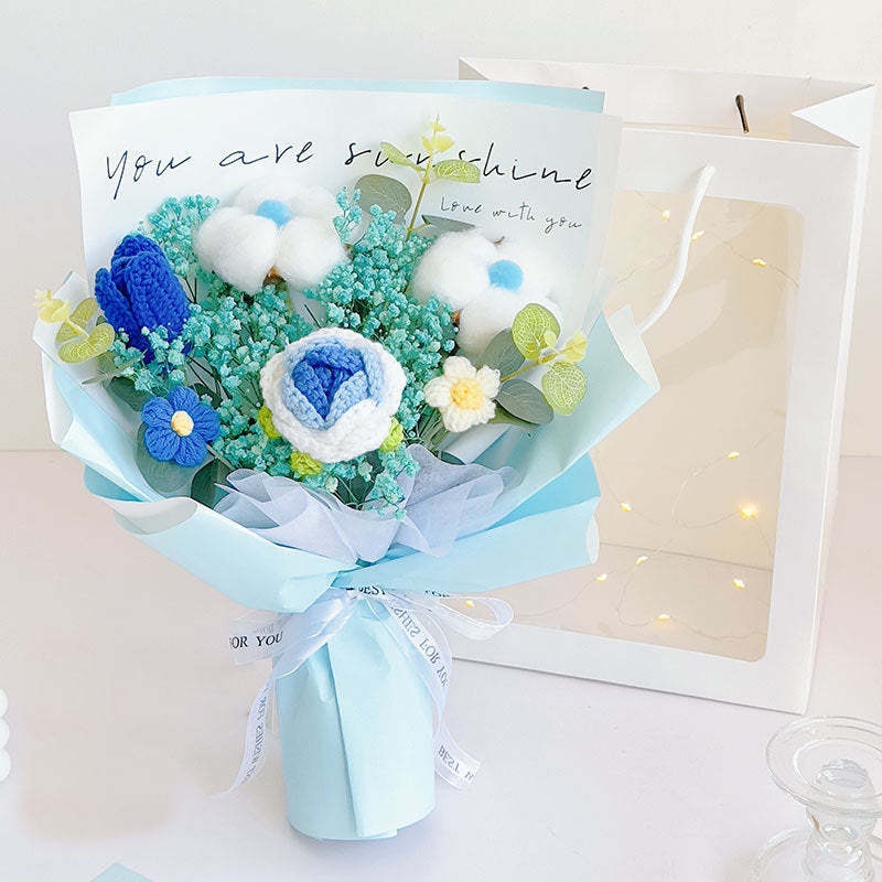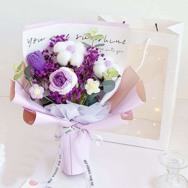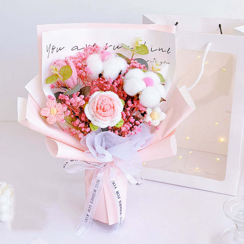 鉤針花束手工針織玫瑰棉和郁金香花束送給她的節日禮物