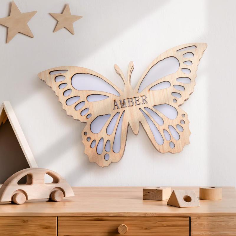 客製化名字木製小夜燈兒童房蝴蝶牆壁裝飾