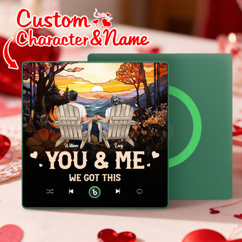 客製化人物和名字音樂冰箱貼紙 - 日落情侶設計個人化名字相框情侶禮物