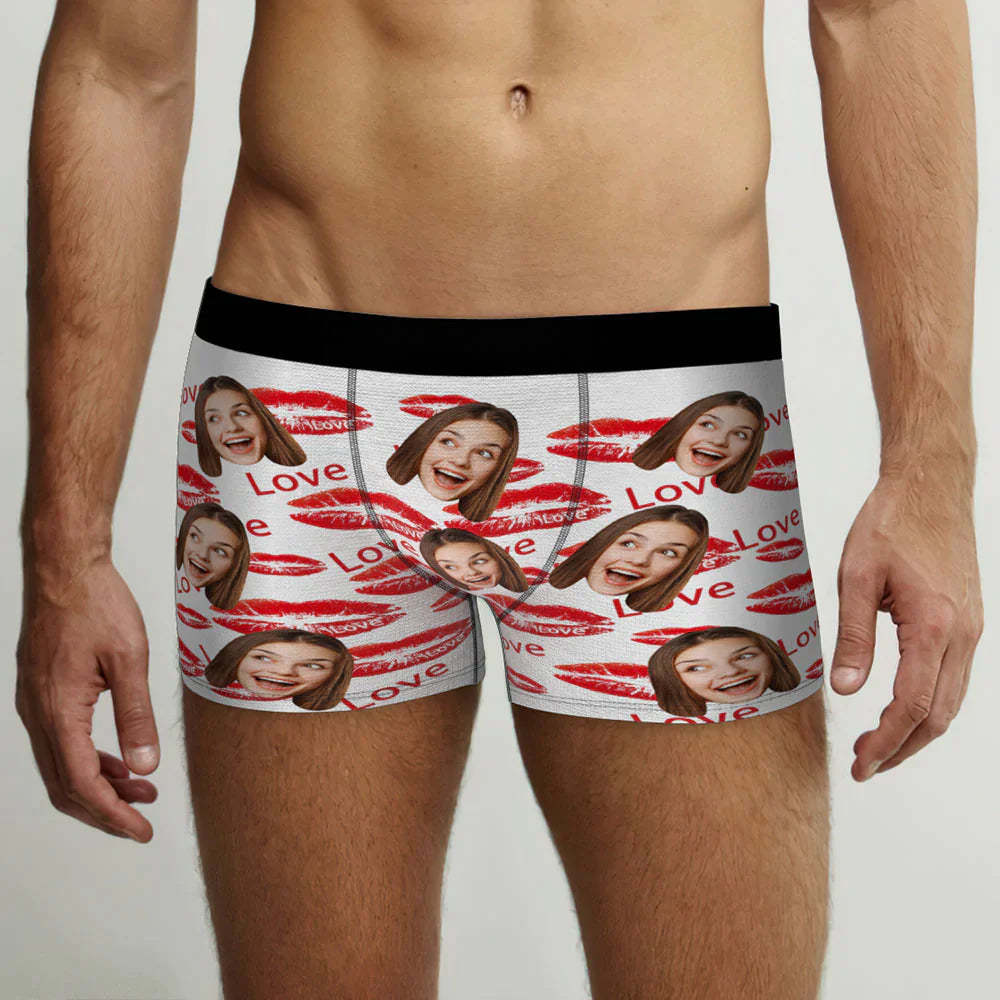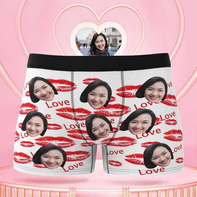 客製化臉部内褲 個人化照片男士內褲 紅唇愛心