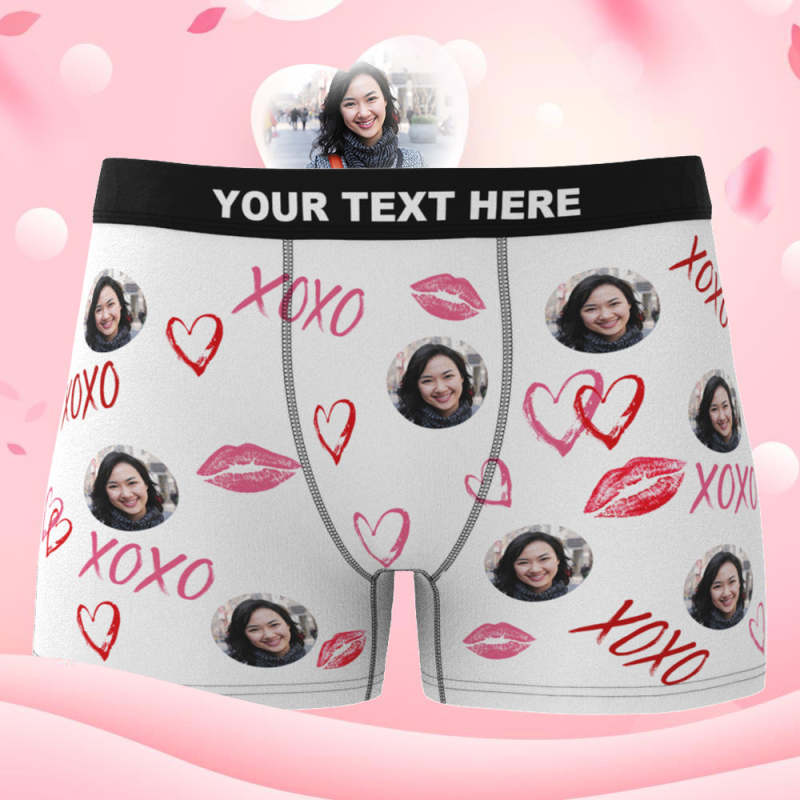 客製化臉部短褲 個人化照片男士內褲 情人節禮物 - XOXO