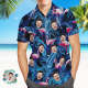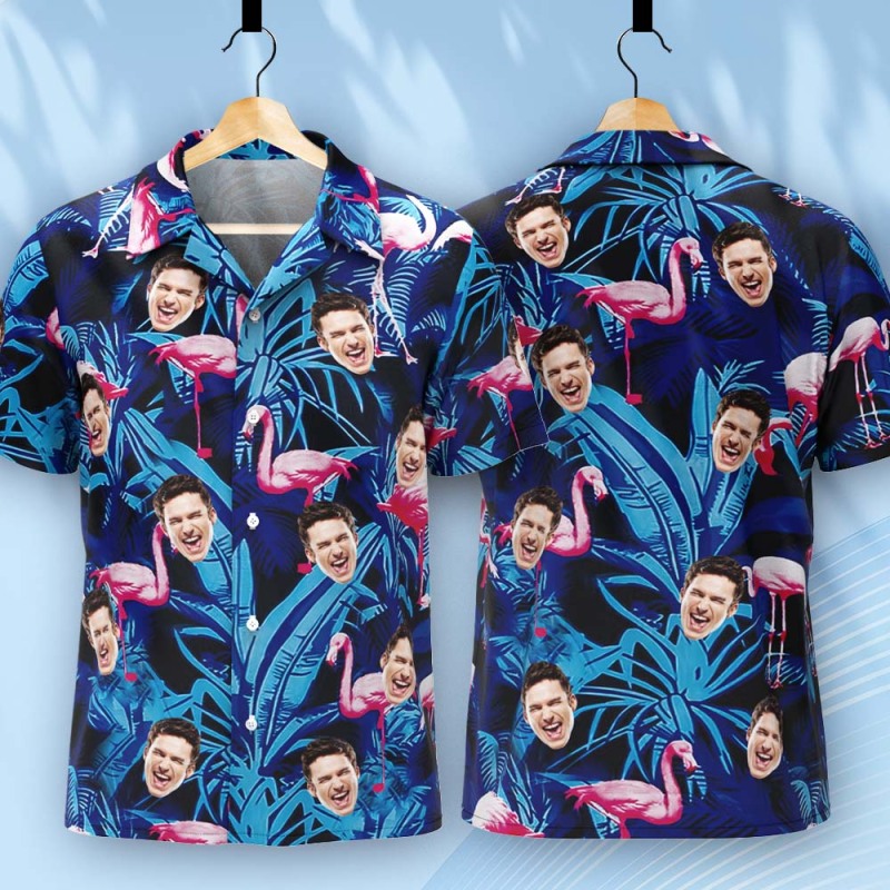 客製化臉部夏威夷襯衫 藍葉火烈鳥照片夏威夷襯衫