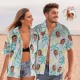 客製化臉部夏威夷襯衫情侶裝氛圍職業夏威夷襯衫彩色棕櫚樹