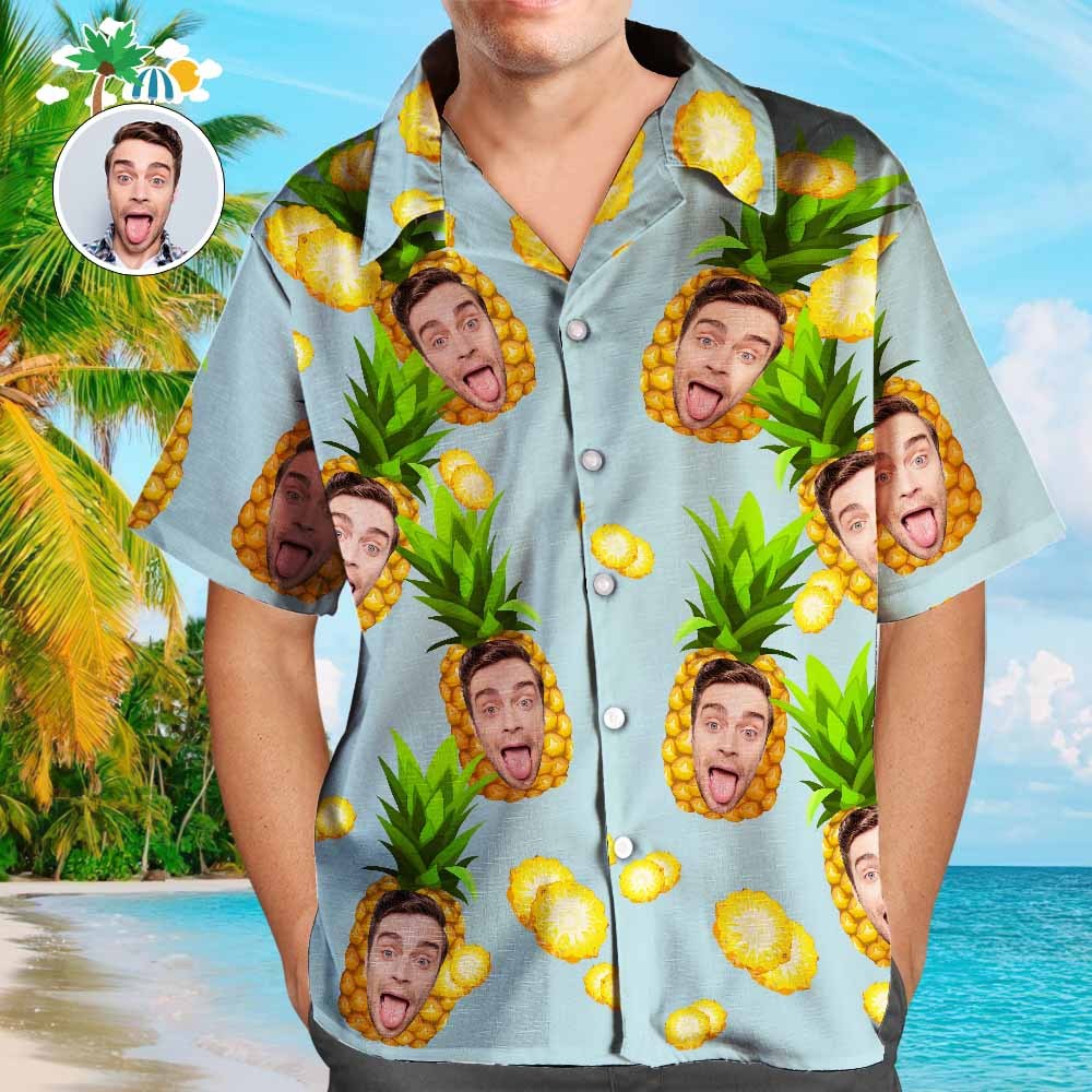 客製化臉型夏威夷風大菠蘿長裙+襯衫家庭搭配