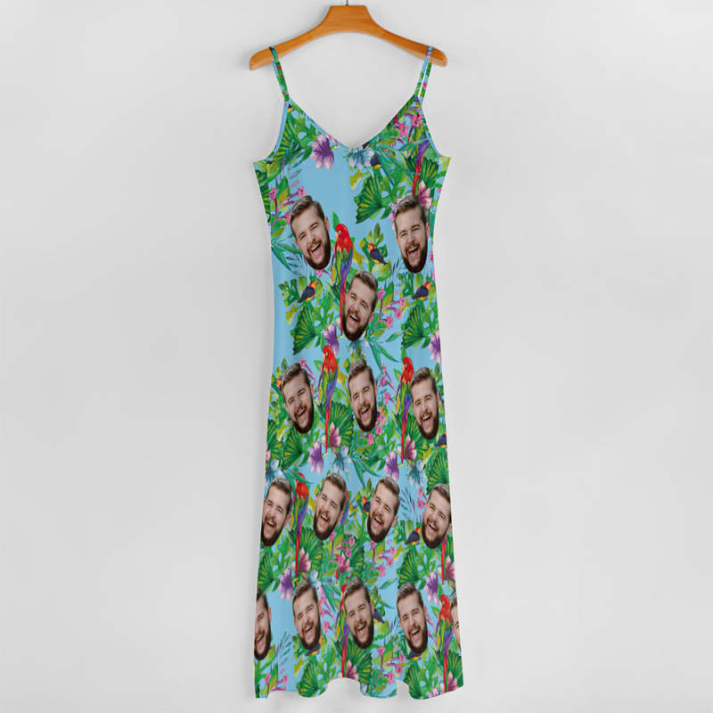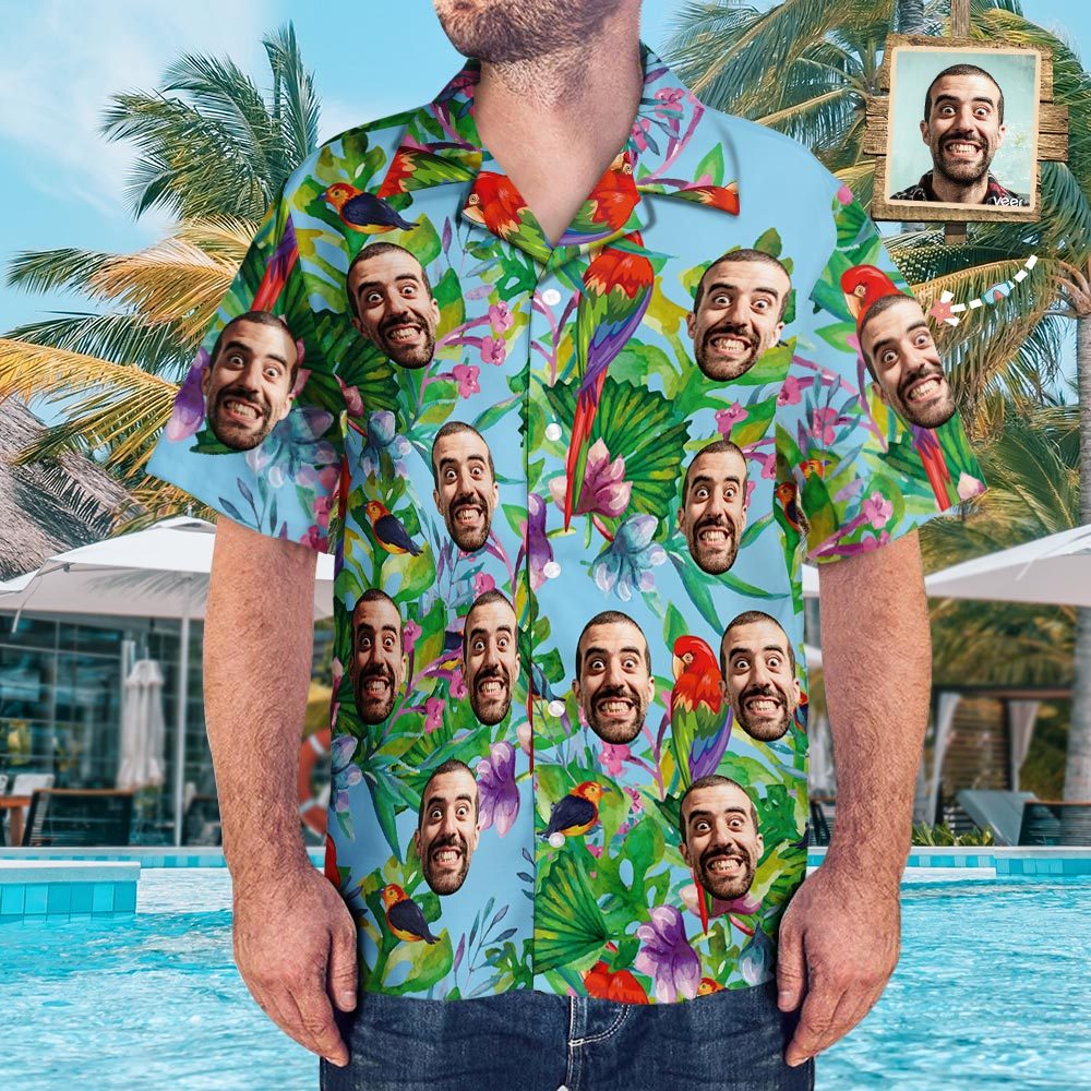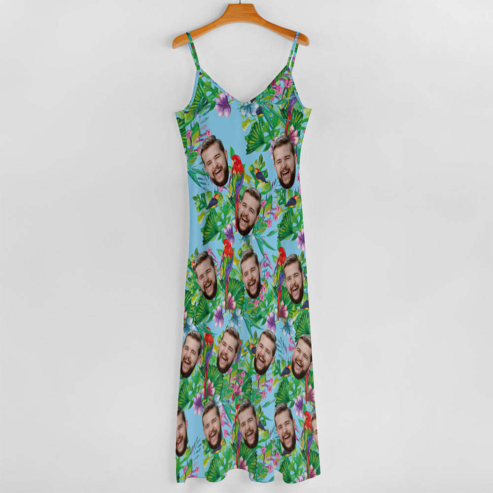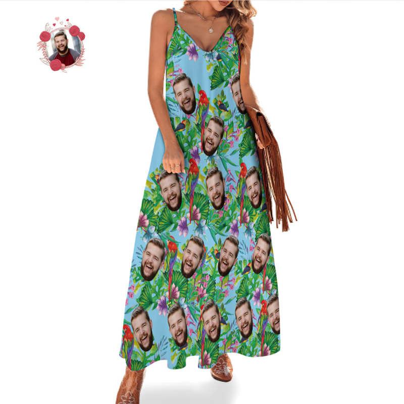 客製化臉夏威夷風格七彩鸚鵡長裙和襯衫家庭搭配
