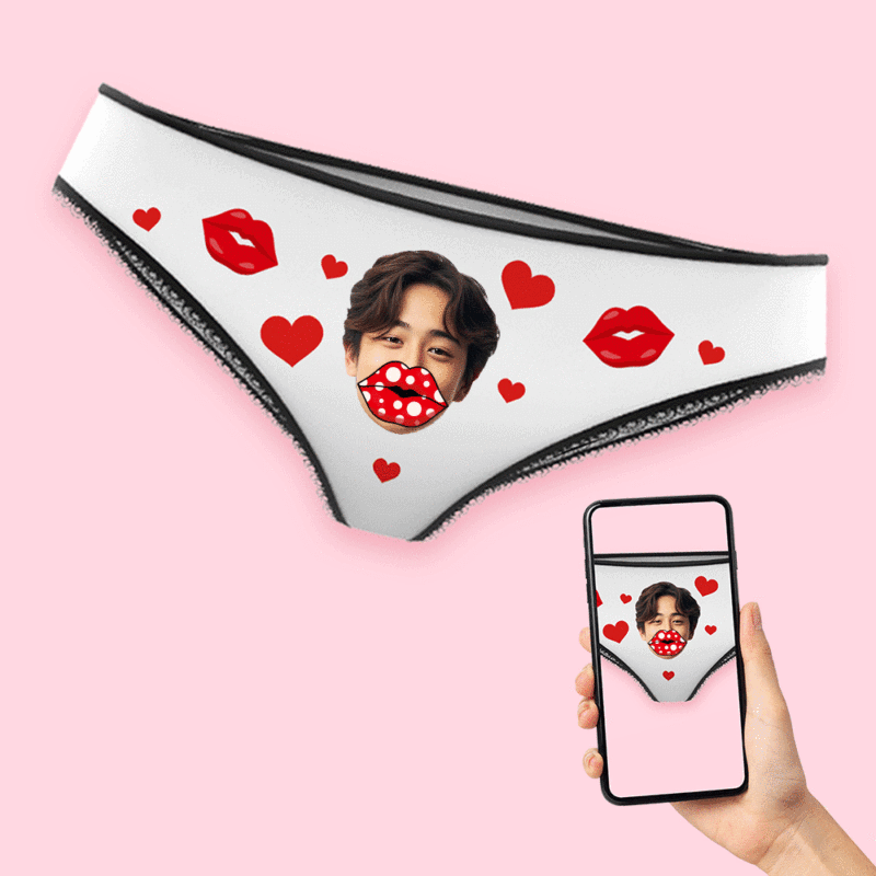 AR視圖 客製化女士熱門個性化臉部愛心嘴唇內褲