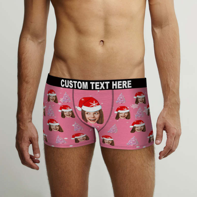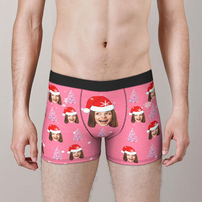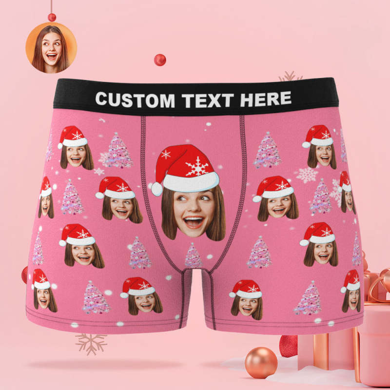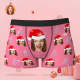 客製化照片粉紅色聖誕樹平角內褲個性化聖誕帽有趣的聖誕禮物