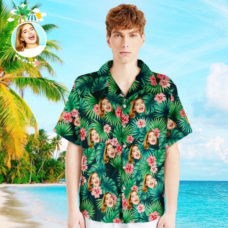 客製化臉襯衫男式夏威夷襯衫紅花