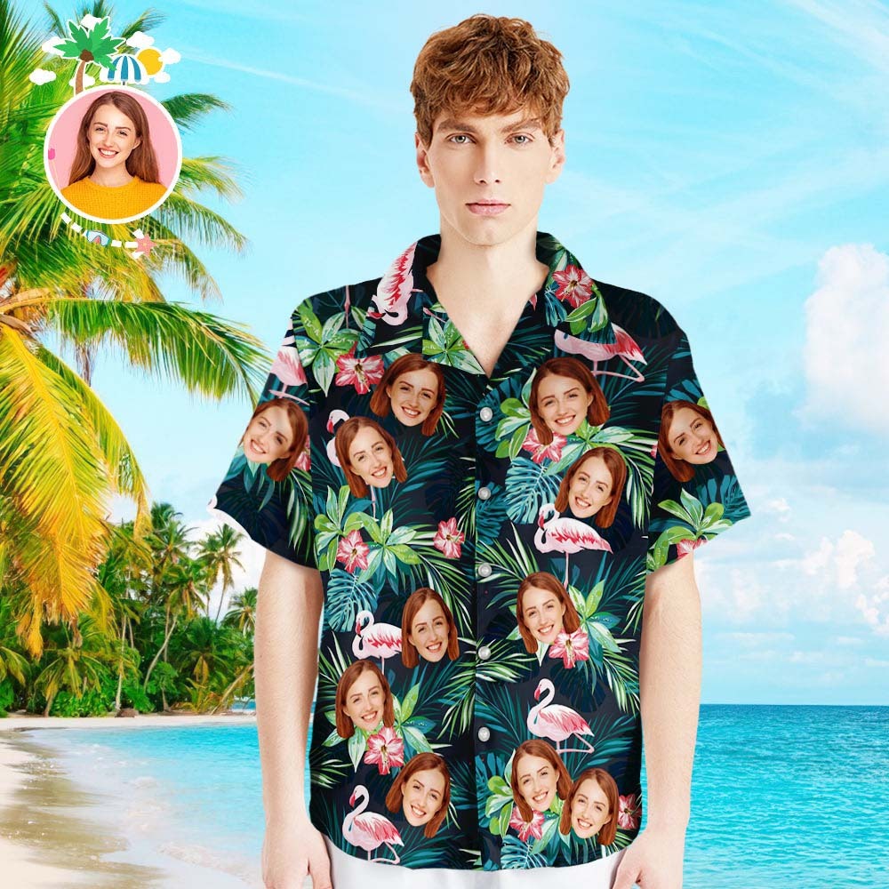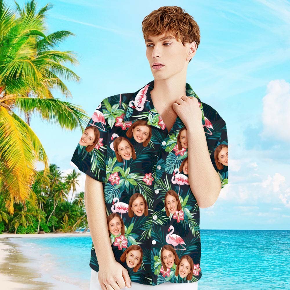 客製化臉襯衫男式夏威夷襯衫火烈鳥花將您朋友的臉放在襯衫上