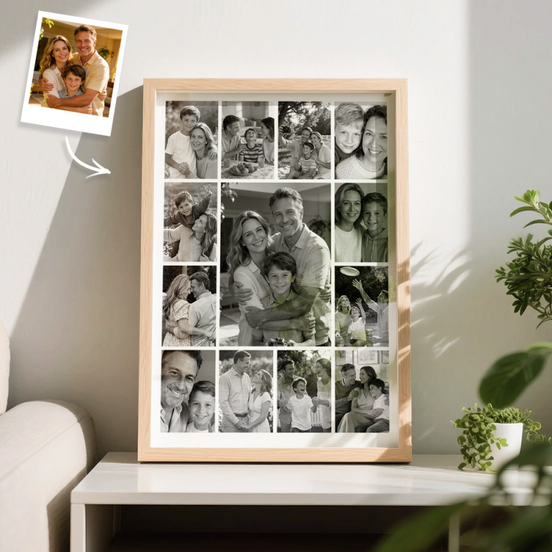 客製化家庭照片拼貼相框 黑白/全彩可選 多圖牆面藝術禮品
