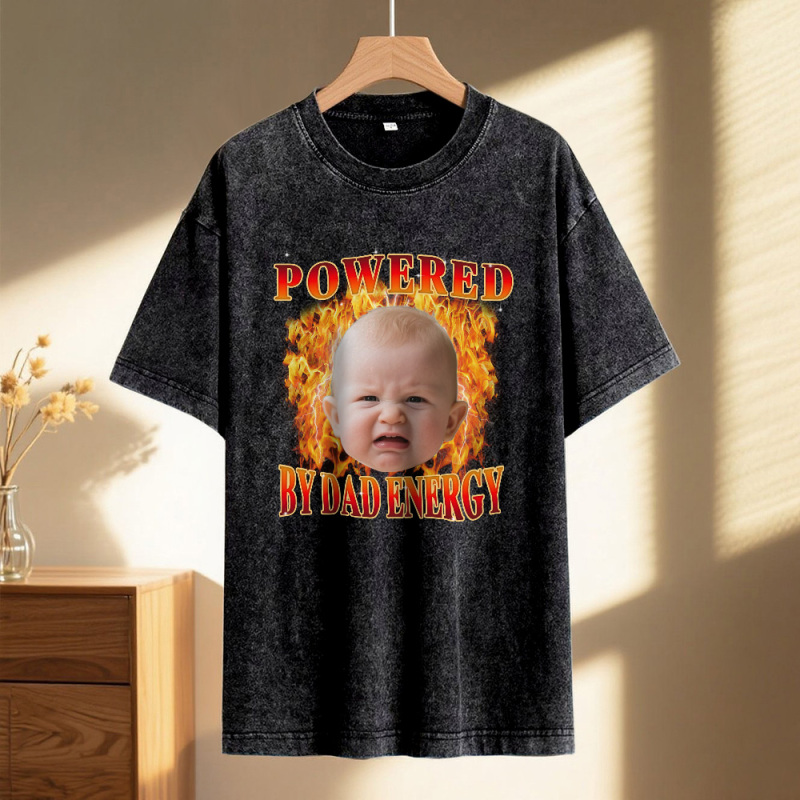 客製化趣味兒童照片和文字t卹,適合爸爸,個人化復古t卹,復古水洗90年代風格,父親節禮物