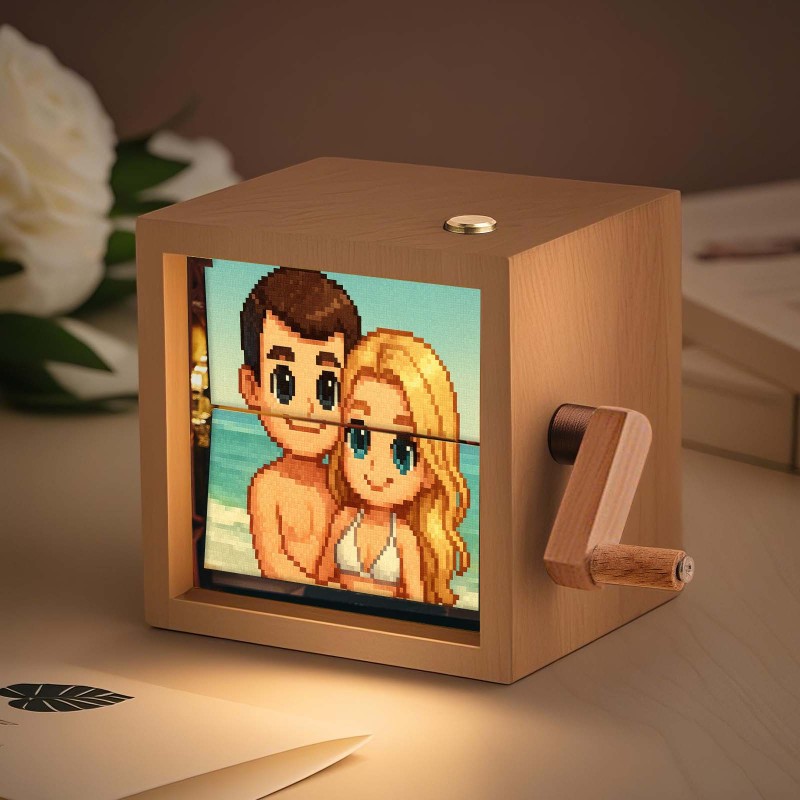 訂製手搖翻書盒機械動漫相簿帶燈胡桃木寶寶照片立方體相框創意禮物