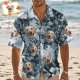 訂製夏威夷襯衫藍色葉子個人化照片夏威夷襯衫有趣的假期派對襯衫,適合寵物愛好者