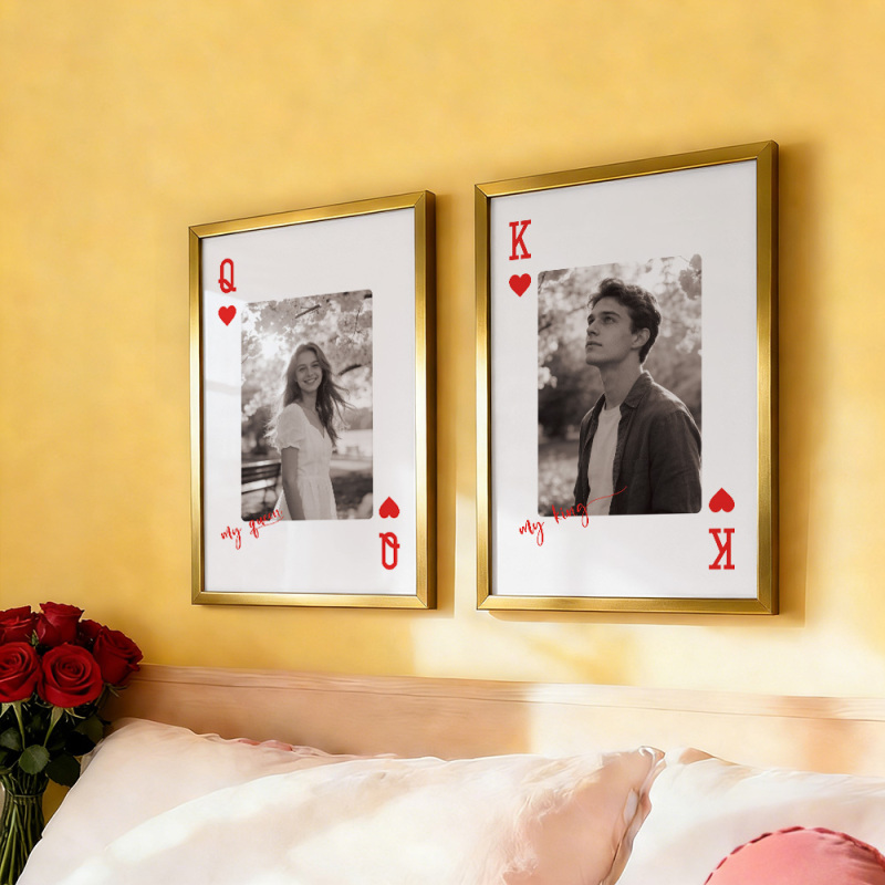 訂製國王和王后撲克牌相框,客製化照片紀念裝飾,情人節禮物