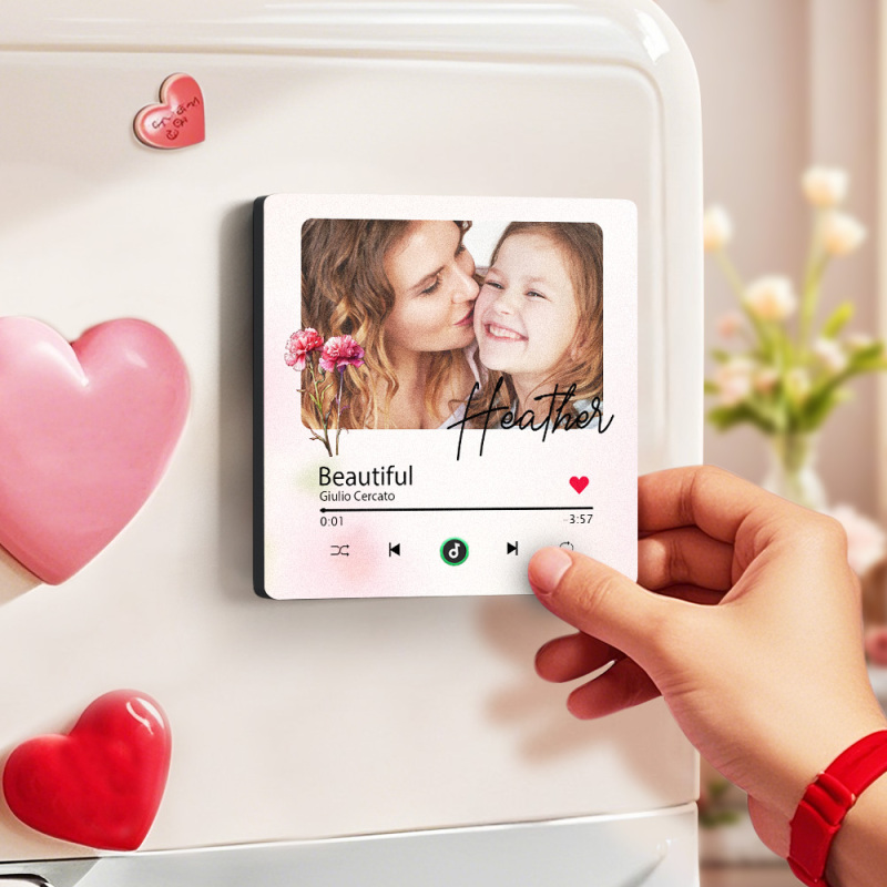 母親節訂製音樂冰箱貼,花朵圖案,文字個性化相框,送給媽媽的禮物