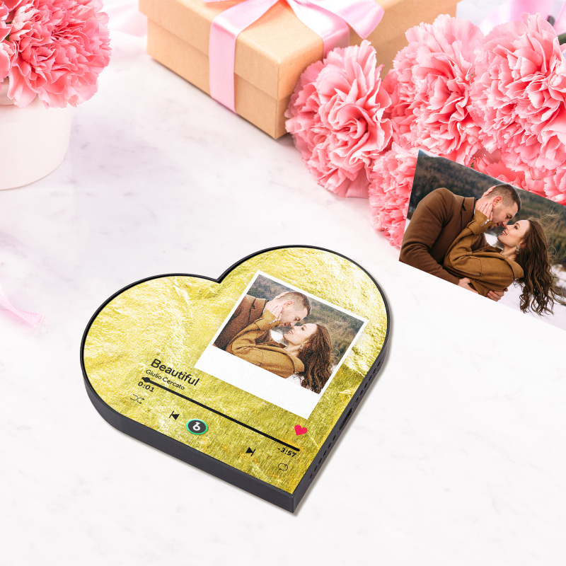 Bring your favorite music to life with our Custom Heart Frame Music Fridge Magnet! This innovative magnet is more than just a decorative piece, it's a functional, interactive device that lets you play your favorite songs directly from your fridge. You can choose your favorite song from our library, or upload your own music or recording file! Whether you want to listen to a relaxing playlist while cooking or enjoy your favorite music while grabbing a snack, this fridge magnet makes it all possible.