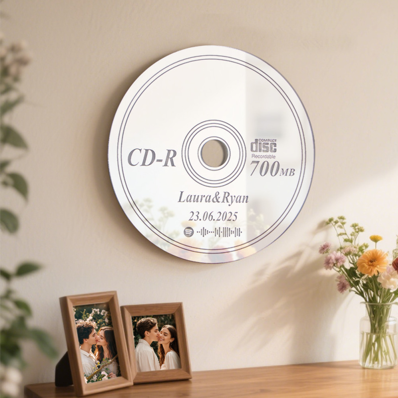 客製化名稱和音樂鏡面藝術牆面 Cd 鏡裝飾藝術喬遷禮物鏡面牆面裝飾臥室鏡