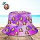 客製化照片水桶帽男女通用個性化臉部徒步旅行海灘運動帽紫色和粉色抽象紋理