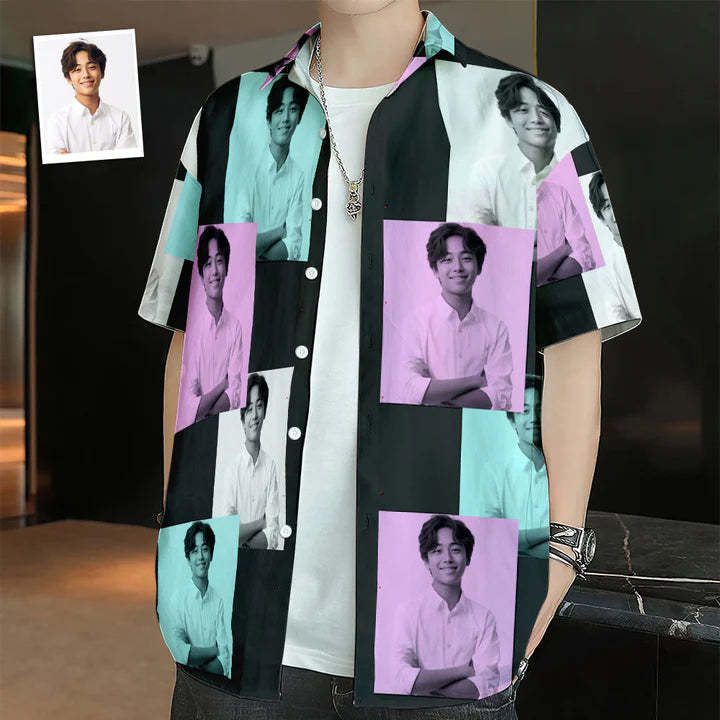 客製化照片夏威夷襯衫男式全印花阿羅哈襯衫酷男孩襯衫 - 復古照片