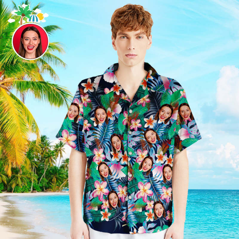 客製化照片夏威夷襯衫親子裝個性化頭像夏威夷襯衫禮物七彩花朵