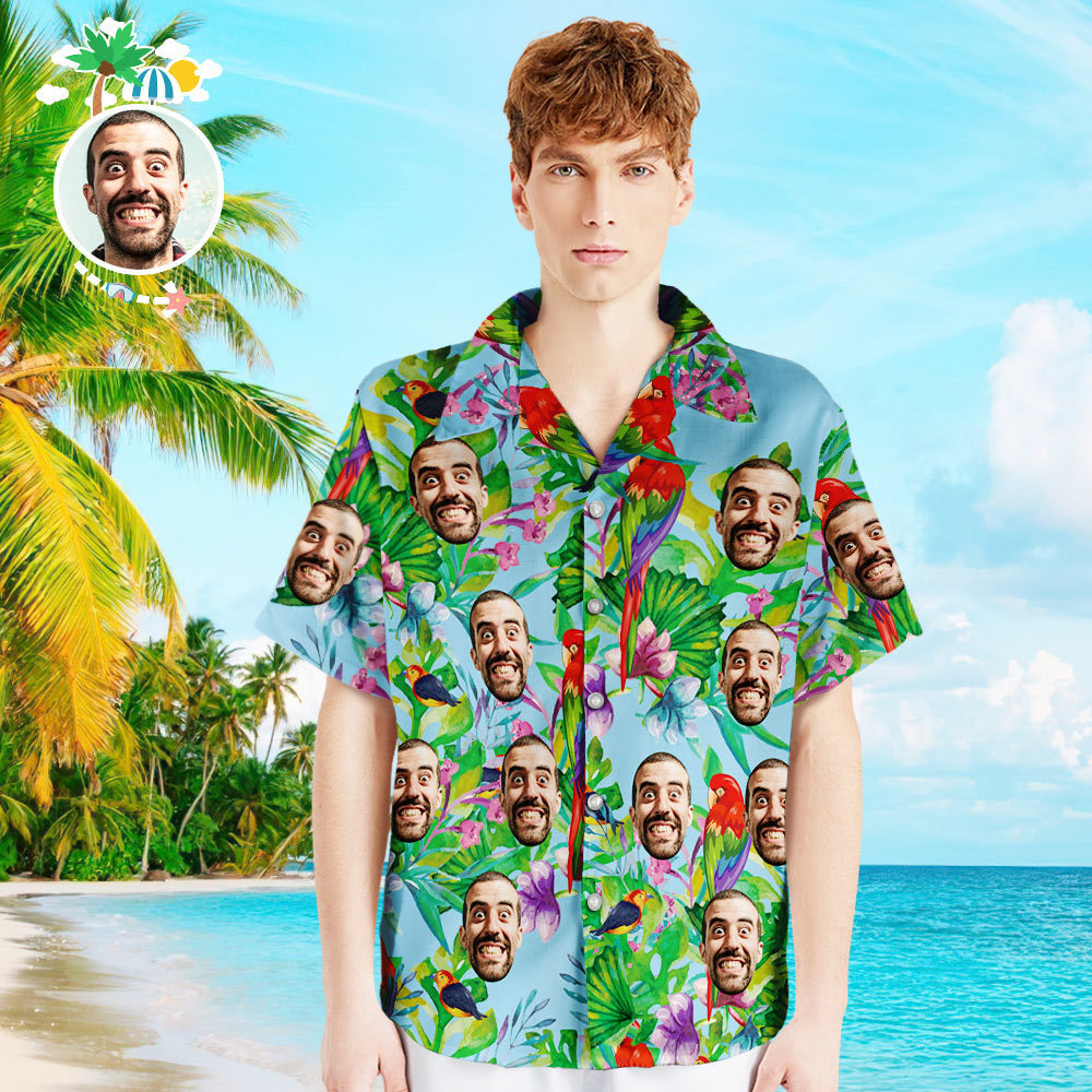 客製化照片夏威夷襯衫親子裝個性化頭像夏威夷襯衫禮物彩色鸚鵡
