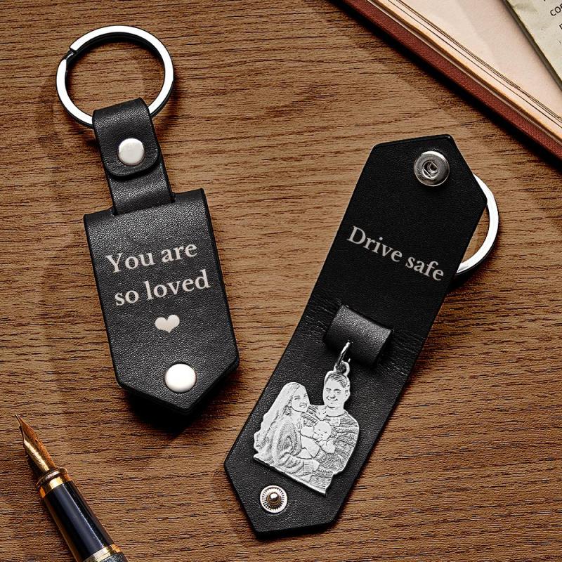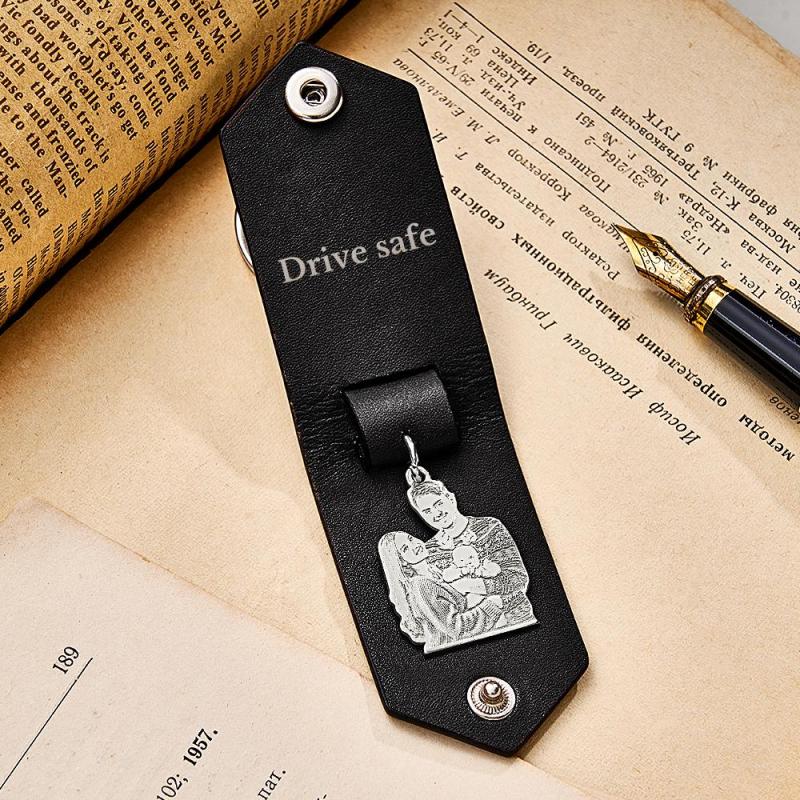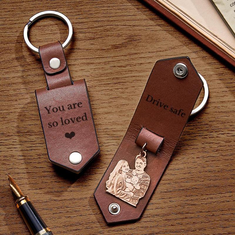 男士訂製照片皮革鑰匙圈帶文字週年紀念禮物