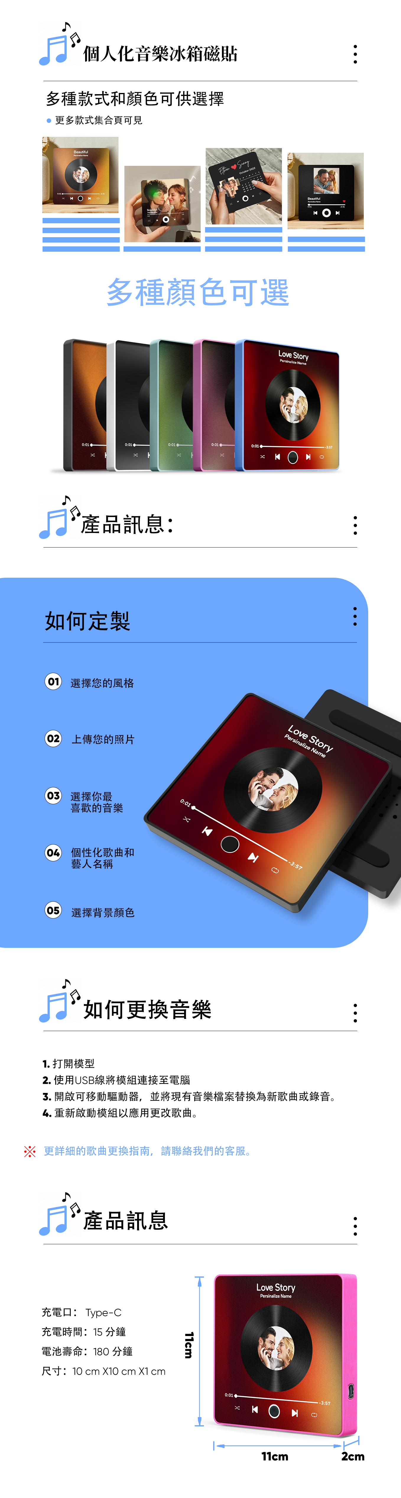 客製音樂:加入浪漫情歌或自己的旋律.每次啟動冰箱貼,它都會播放您自訂的歌曲.按照我們的教程,輕鬆更換音樂.