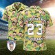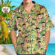 客製化印花夏威夷襯衫個性化臉部和文字球迷襯衫 - 葉子和花朵