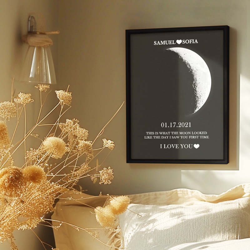定制銀色月相和名字木框與您的文字定制情侶藝術框架最好的情人節禮物