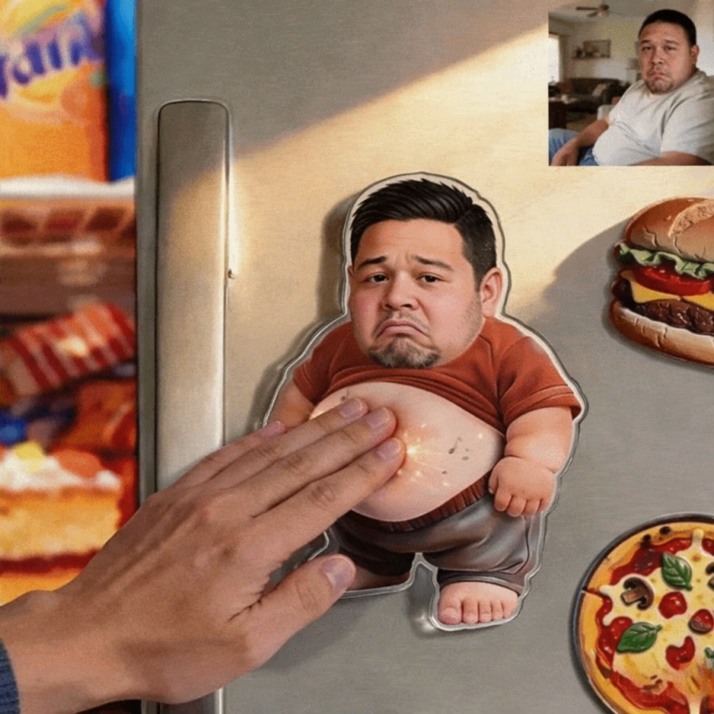 個人化軟萌照片音樂冰箱貼 – 可自訂照片的卡通人物擠壓肚皮磁貼,內建聲音,送給家人和情侶的趣味禮物