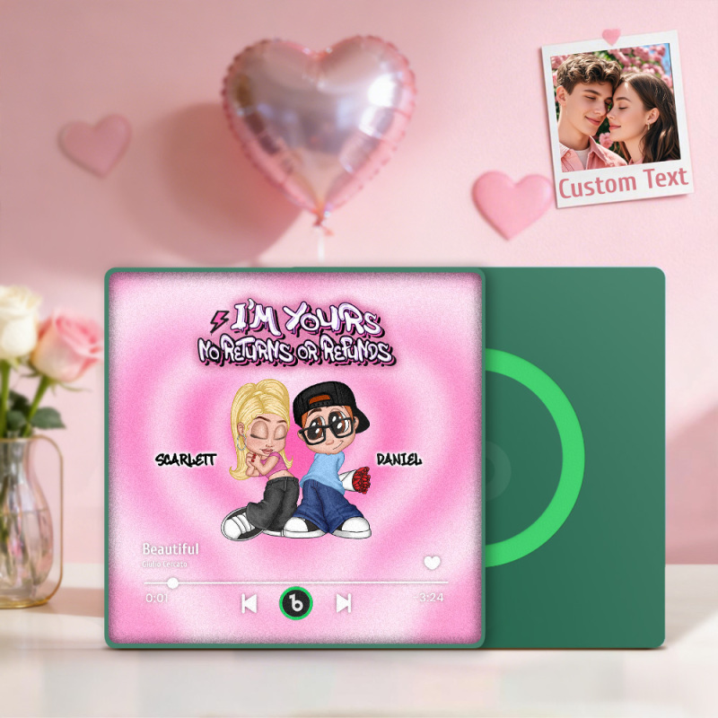實用且精美絕倫:這款精緻的冰箱貼不僅能裝飾您的冰箱,還能讓您沉浸在音樂的溫暖氛圍中.安全環保:採用優質無毒材料製成,低耗電量.獨一無二,飽含情感:獨一無二的禮物,承載著你們的愛情故事.無論是情人節還是日常使用,都是甜蜜愛的完美紀念.製作時間:3-5個工作天.小提醒:本產品為平面印刷設計,並非3D產品.贈送這款個人化的音樂冰箱貼,讓它成為你們愛情故事中動人的旋律!