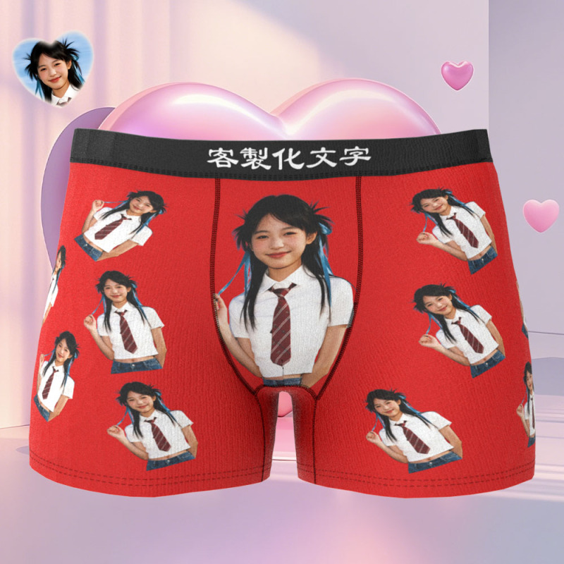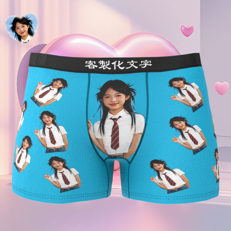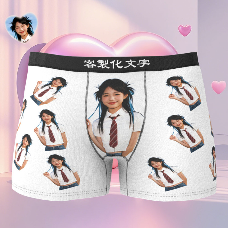 七夕禮物客製化女友半身照片平角褲訂製照片內衣獨特的禮物