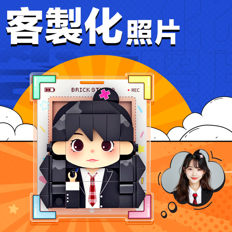 - 自訂範圍包括角色的髮型,表情,常規配件等.對於複雜的配件可能無法很好地還原,我們會盡量在積木結構範圍內為您還原.