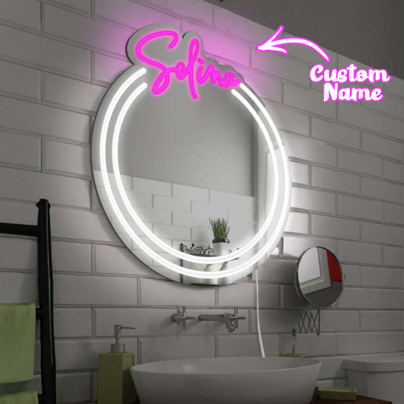 個性化姓名鏡前燈,可客製顏色,霓虹鏡面led可調光燈,生日派對婚禮禮物