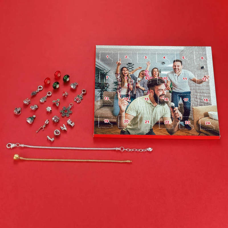 客製化日曆照片魅力聖誕驚喜盲盒手鐲24日倒計時禮盒手鐲送給朋友