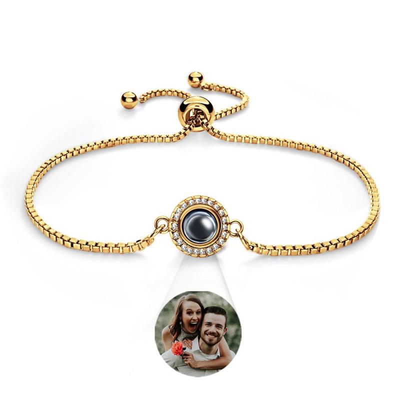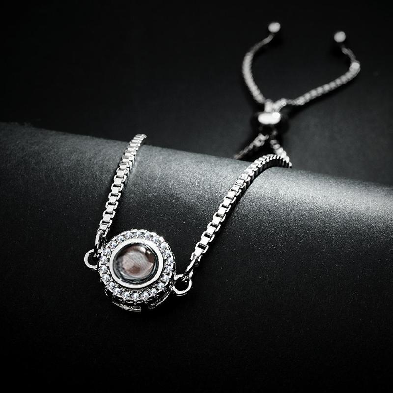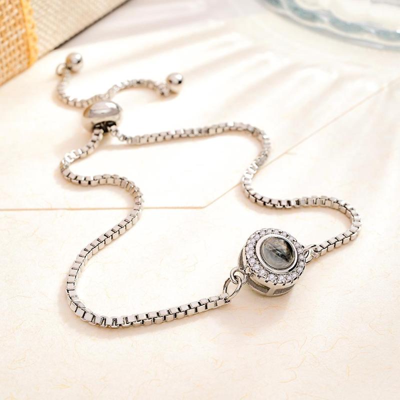 個性化照片投影手鍊 圓形鋯石可調手鍊 情人節禮物