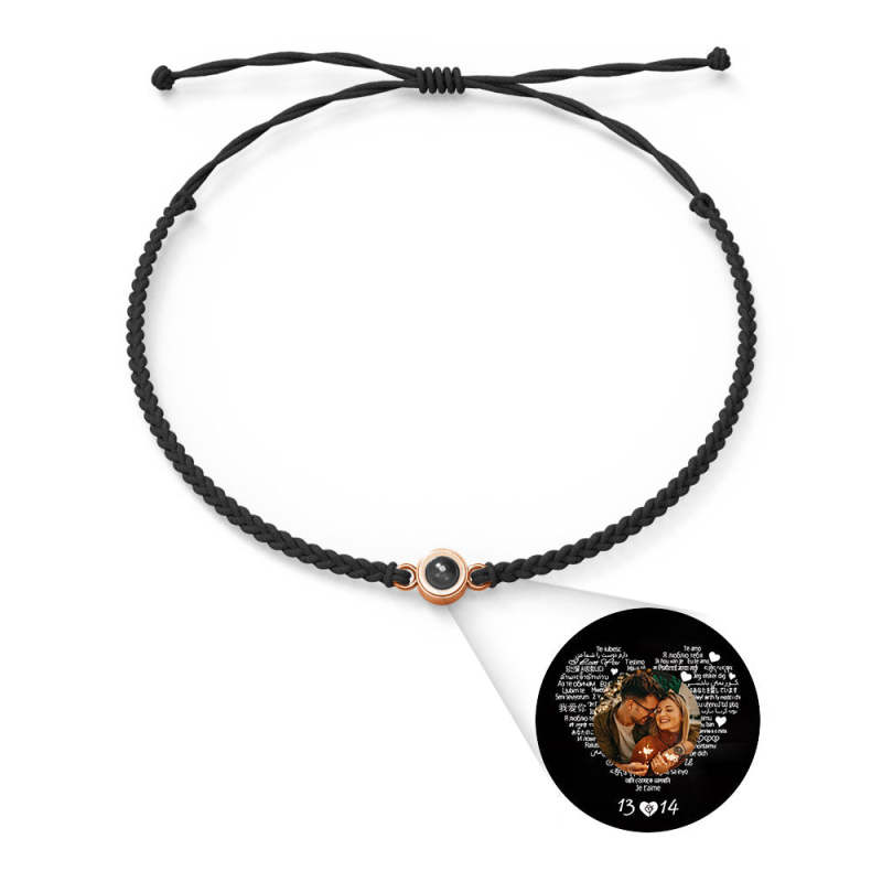 個性化照片投影吊飾手鍊 多種顏色款式 我愛你 100 種語言 簡約照片珠寶 送給她的生日禮物