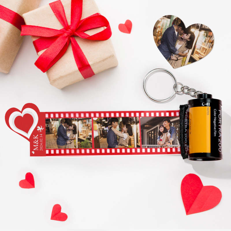 紅色愛心相片捲鑰匙圈個人化可拉相機鑰匙圈情人節情侶禮物