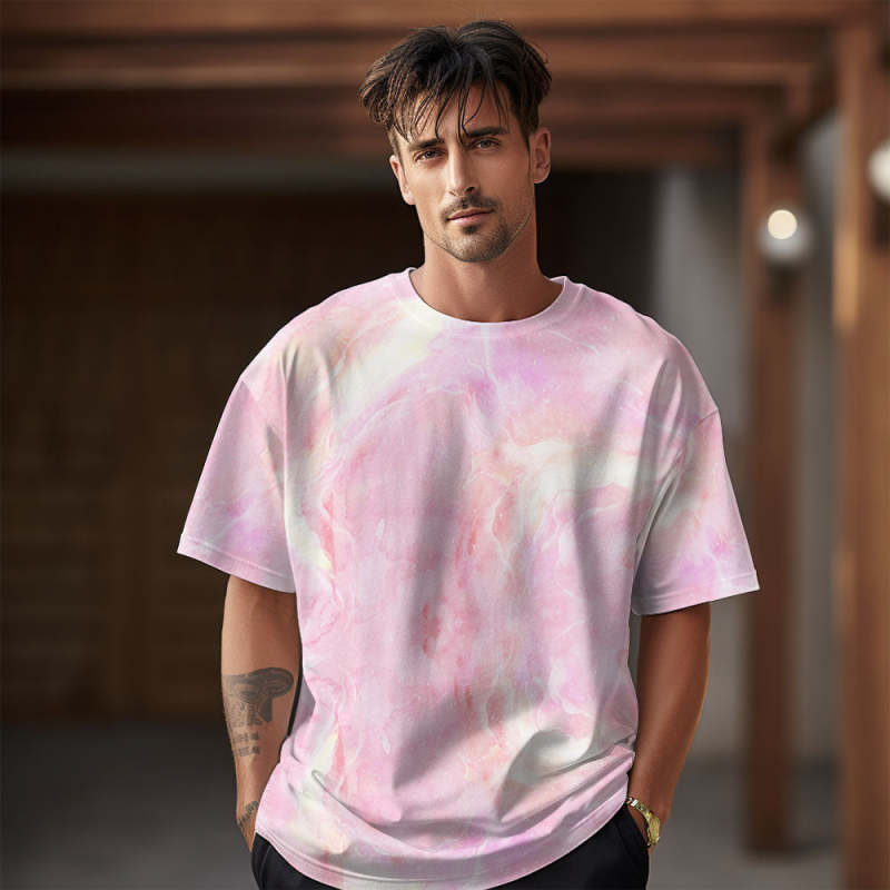 紮染風格男士T卹浪漫夏季短袖男式
