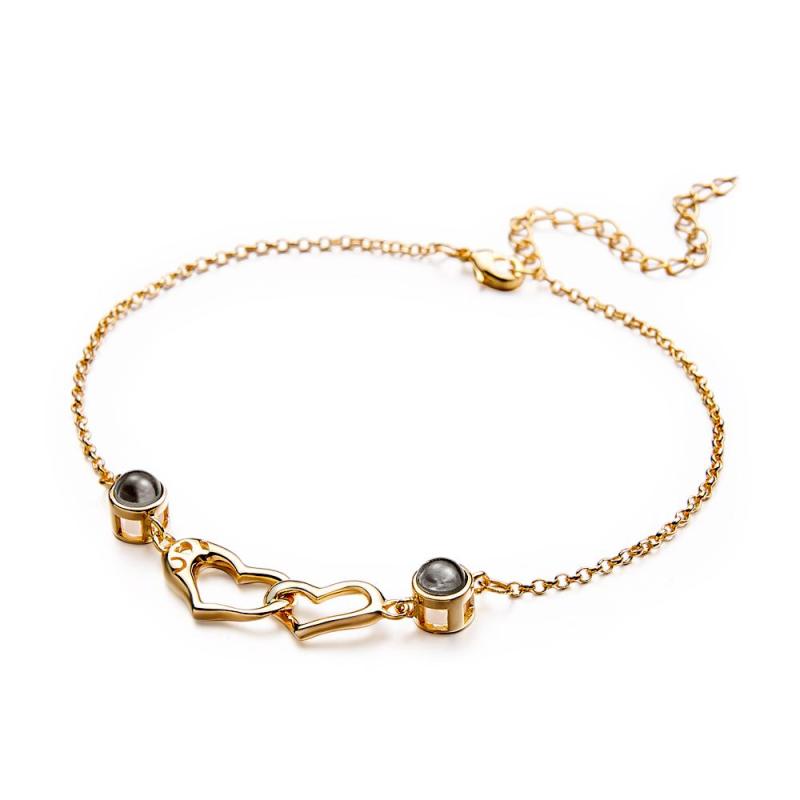 兩心投影手鍊個人化圖片手鍊紀念品珠寶時尚最好的朋友禮物
