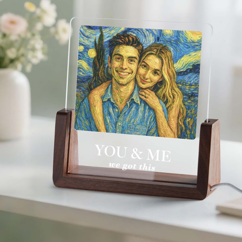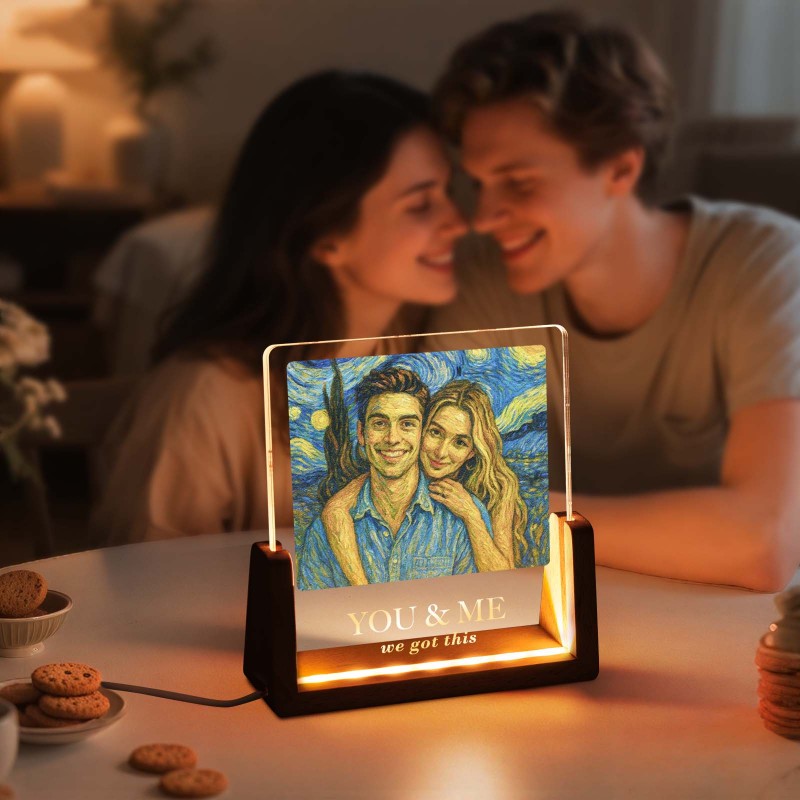 情人節禮物 個人化照片 梵谷風格 訂製文字 壓克力led夜燈 情侶禮物