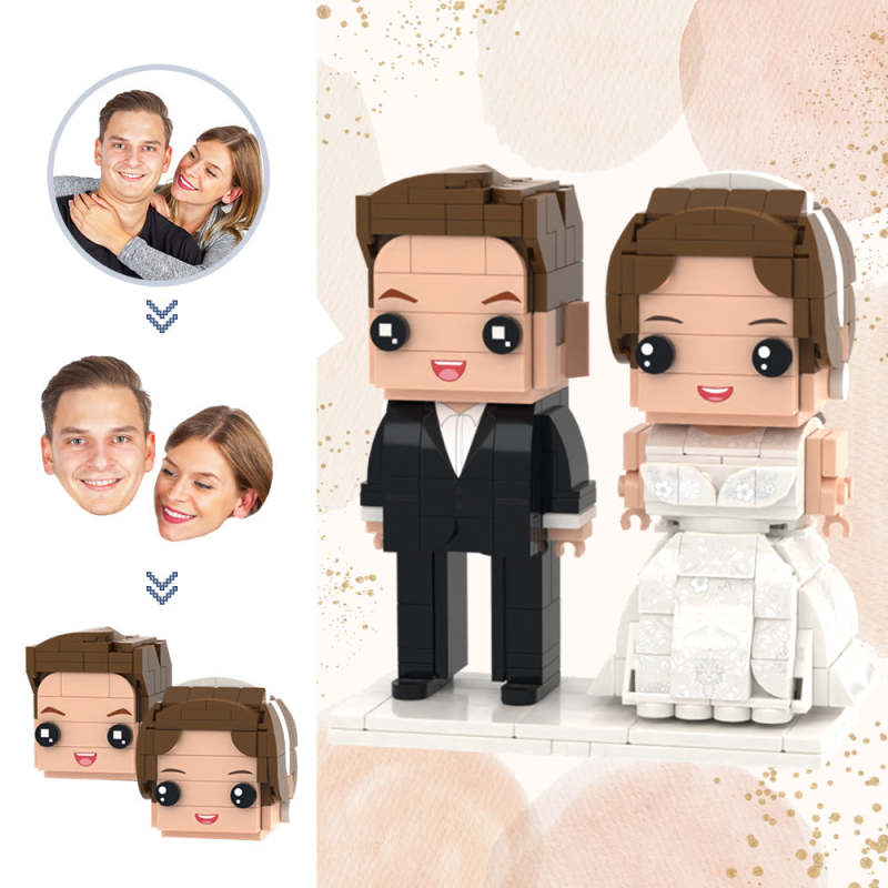 結婚禮物 可自訂頭像 2 人訂製積木人 婚禮照片積木人